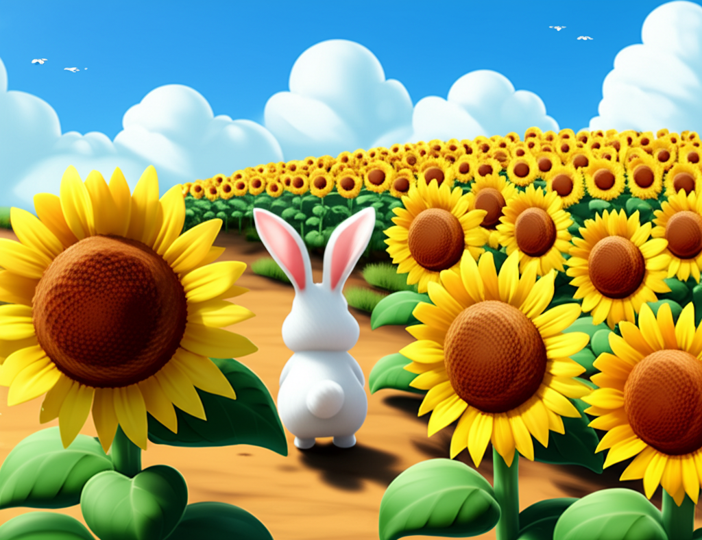 Snowball felt tiny amidst these towering flowers. He hopped through the rows, their velvety petals brushing against his fur. He even saw a busy bumblebee collecting nectar from a sunflower’s heart.